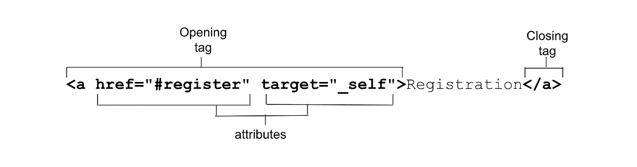 HTML에서 Anchor 태그 (<a>)는 하이퍼링크를 만드는 데 사용된다. Anchor 태그는 열리는 태그 <a>와 닫히는 태그 </a>로 구성된다. 하지만 단순히 태그만 작성한다고 해서 하이퍼링크가 활성화되지는 않는다.